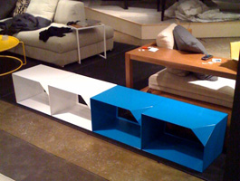 Bing est un petit meuble d'appoint. � l'horizontal ou à la vertical il sert de table ou de banc. Il est vendu chez Domison en plusieurs couleurs: